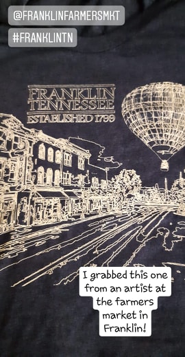 After brunch, we went to the Farmer’s Market in Franklin! And I found a T-shirt from a local artist. I did pay $25 for the shirt, but I had to have something that proved I was there, right?