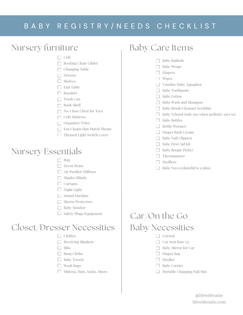 As a BONUS!!! Here are some checklists I’ve made for those who made it this far in the blog post! I hope these can help you all like it is helping me currently. I’ve done so much research and not everything on these lists are needed, but they’re my preferences and what I’ve been gathering in preparation for our baby! Thank you again!
