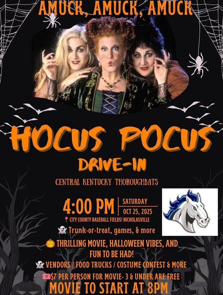 - 4 pm – City Co Baseball Fields, Nicholasville – Hocus Pocus Drive-In (3 and under free, movie starts at 8 pm)