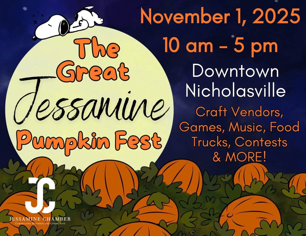 - 10-5 pm – Downtown, Nicholasville – The Great Jessamine Pumpkin Fest FREE